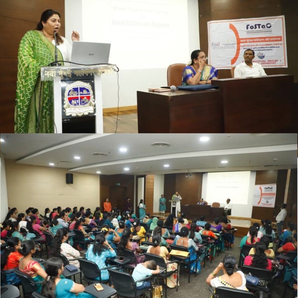 नवी मुंबई प्रतिनिधी-पीएम स्वानिधी अंतर्गत नवी मुंबई महानगरपालिका कार्यक्षेत्रातील अन्नपदार्थ विक्री करणाऱ्या महिलांचे अन्न सुरक्षिततेसाठी प्रशिक्षण महानगरपालिका मुख्यालयातील ज्ञानकेंद्र सभागृहात संपन्न झाले. या वेळी समाजविकास विभागाच्या उपआयुक्त श्रीम. नयना ससाणे यांनी उपस्थितांना मार्गदर्शन केले.