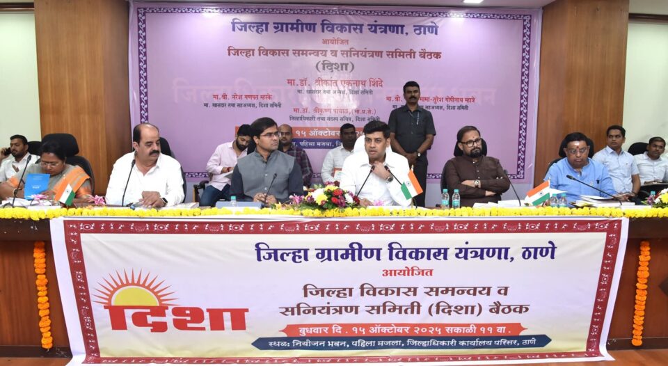 ठाणे प्रतिनिधी(जिल्हा परिषद, ठाणे)- जिल्हा विकास समन्वय व सनियंत्रण समितीचे अध्यक्ष तथा खासदार डॉ. श्रीकांत एकनाथ शिंदे अध्यक्षतेखाली आज, दि. १५ ऑक्टोबर, २०२५ रोजी नियोजन भवन, जिल्हाधिकारी कार्यालय, ठाणे येथे बैठक संपन्न झाली.