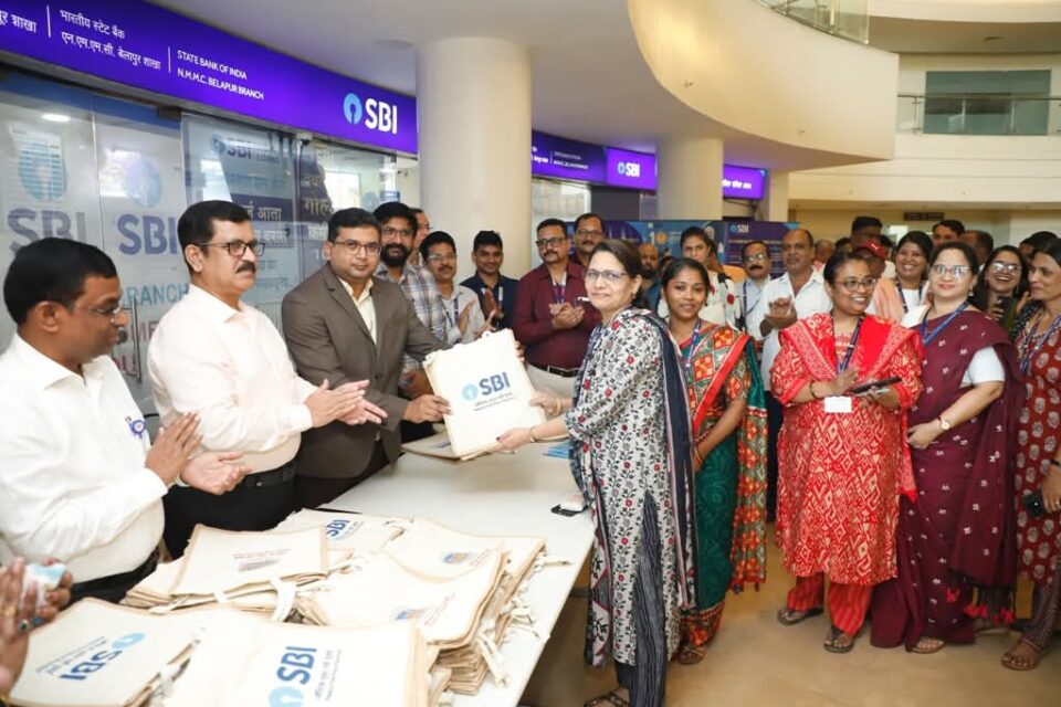 *नमुंमपाच्या प्लास्टिक प्रतिबंधात्मक कार्यात कापडी पिशव्या वितरण करुन स्टेट बँक ऑफ इंडियाचा सहभाग*