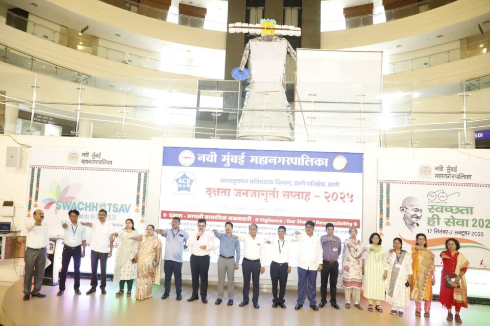 नवी मुंबई, प्रतिनिधी “जीवनाच्या सर्व क्षेत्रात सच्चेपणा आणि कायद्याचे पालन करेन, लाच घेणार नाही आणि लाच देणार नाही, सर्व कामे प्रामाणिकपणे आणि पारदर्शक पध्दतीने करेन, जनहितासाठी कार्य करेन” अशी प्रतिज्ञा घेऊन भ्रष्टाचाराविरुध्द जनजागृती होण्याच्या उद्देशाने आज कोकण भवनमध्ये ‘दक्षता जनजागृती सप्ताहाचा’ प्रारंभ करण्यात आला. विभागीय आयुक्त कार्यालयाच्या बैठक सभागृहात सकाळी 11.00 वाजता कोकण भवनातील अधिकारी आणि कर्मचाऱ्यांनी भ्रष्टाचार निर्मूलनाची शपथ घेतली.