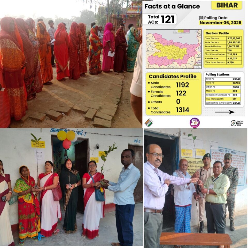 बिहार निवडणुका 2025 : मुजफ्फरपूरमध्ये पहिल्या टप्प्यातील मतदानाला मतदारांचा उत्स्फूर्त प्रतिसाद! मतदानासाठी आलेल्या नागरिकांचा रोप देऊन सन्मान करण्यात आले.