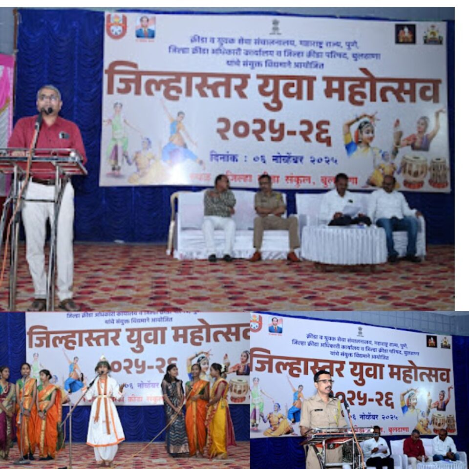 बुलढाणा, प्रतिनिधी: जिल्हास्तर युवा महोत्सव आयोजन समिती, जिल्हा क्रीडा परिषद व जिल्हा क्रीडा अधिकारी कार्यालय बुलढाणा यांच्या संयुक्त विद्यमाने जिल्हास्तर युवा महोत्सव जिल्हा क्रीडा संकुल, जांभरुन रोड, बुलढाणा येथे उत्साहात पार पडला. विविध कला, क्रीडा व सांस्कृतिक क्षेत्रातील युवकांनी या महोत्सवात उत्स्फूर्त सहभाग नोंदवून आपल्या कलागुणांचे दर्शन घडविले.