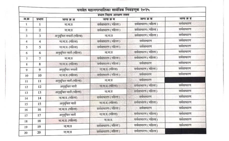 पनवेल महानगरपालिका सार्वत्रिक निवडणूक – २०२५ साठी आरक्षण जाहीर*