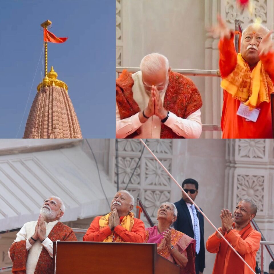 अयोध्येत आयोजित भव्य सोहळ्यात श्रीराम मंदिराच्या कळसावर पंतप्रधान नरेंद्र मोदी यांच्या हस्ते धर्मध्वजाची स्थापना, शेकडो वर्षांपासून प्रतीक्षित जन्मभूमी मंदिराला पूर्णत्व प्राप्त झाले आहे आज श्रीराम लल्लाच्या मंदिरावर फडकलेला हा धर्मध्वज भारतीय संस्कृतीच्या पुनर्जागरणाचा ध्वज आहे, असं सांगत पंतप्रधान नरेंद्र मोदी यांनी रामराज्याचा संकल्प केला अधोरेखित.