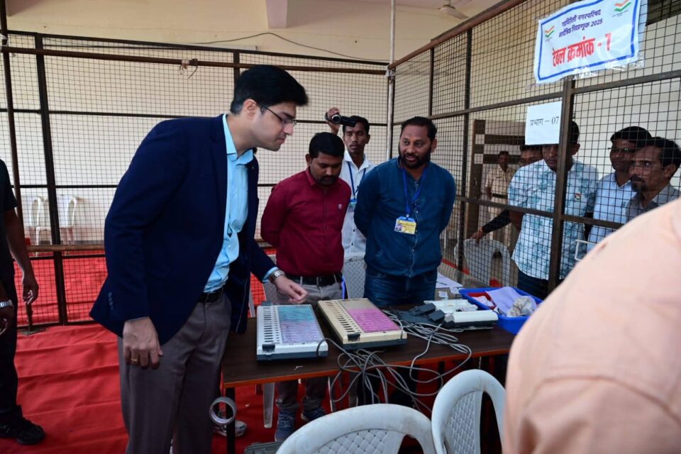 *मतदान केंद्रांची प्रत्यक्ष पाहणी*ईव्हीएम प्रक्रियेनंतर जिल्हाधिकारी पंडा यांनी शहरातील विविध मतदान केंद्रांना भेट दिली. यामध्ये महिला महाविद्याल मतदान केंद्र, झाशी राणी नगर येथील नगरपरिषद ग्रंथालय व डॉ. बाबासाहेब आंबेडकर नगरपरिषद शाळा या मतदान केंद्रांचा समावेश होता.मतदान प्रक्रियेदरम्यान कोणतीही अडचण निर्माण होऊ नये, प्रत्येक केंद्र सुस्थितीत व सुबकपणे कार्यरत राहावे असे सांगून या सर्व ठिकाणी असलेल्या मूलभूत सुविधांची उपलब्धता, स्वच्छता, स्वतंत्र स्वच्छतागृहे, प्रकाश व्यवस्था, पिण्याचे पाणी, रॅम्प, दिव्यांगांसाठी प्रवेश सुविधा यांची सविस्तर माहिती घेतली व आवश्यक सुधारणा विहित वेळेत पूर्ण करण्याचे निर्देश त्यांनी दिले.