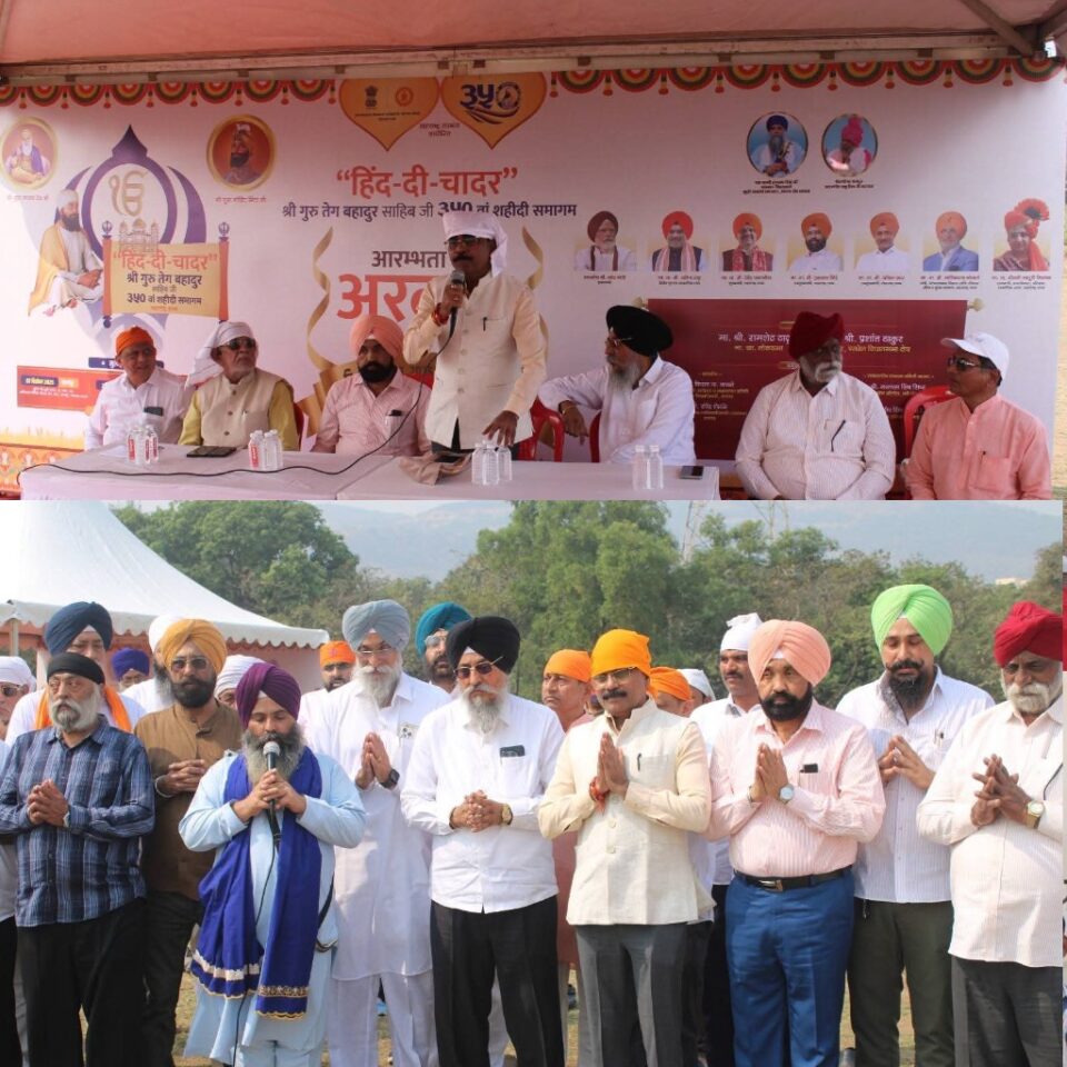 नवी मुंबई, प्रतिनिधी- ‘हिंद दी चादर श्री गुरु तेग बहादूर’ यांच्या 350 व्या शहिदी समागम शताब्दी वर्षानिमित्त 21 डिसेंबर 2025 रोजी खारघर, नवी मुंबई येथे केंद्रीय गृहमंत्री अमित शहा यांच्या उपस्थितीत कार्यक्रमाचे आयोजन करण्यात येणार आहे. त्यानिमित्ताने या कार्यक्रमास उपस्थित राहण्यासाठी जिल्ह्यातील शीख, सिकलीगर, बंजारा, लबाना, मोहयाल, सिंधी समाजातील प्रतिनिधींनी यांची उपस्थिती मोठ्या प्रमाणात असणार आहे. तरी या कार्यक्रमाची सुरुवात आरम्भता की ‘अरदास’ रायगड जिल्हाधिकारी किशन जावळे यांच्या हस्ते करण्यात आली.     नवी मुंबई, खारघर येथील कॉर्पोरेट पार्क येथे 21 डिसेंबर 2025 रोजी शहिदी समागम शताब्दी या कार्यक्रमाची सुरुवात जिल्हाधिकारी श्री.जावळे यांच्या हस्ते आरम्भता की “अरदास” करुन करण्यात आली. यावेळी क्षेत्रिय आयोजन समिती, नवी मुंबईचे अध्यक्ष अमरपाल सिंघ रंधावा, सुप्रीम कॉन्सील, नवी मुंबई गुरुद्वाराचे अध्यक्ष श्री. जसपाल सिंग सिद्धू, खारघर गुरुद्वाराचे अध्यक्ष परमजित सिंग बल, महाराष्ट्र राज्य सिख समन्वय समितीचे श्री. चरणदीप सिंग (हॅप्पी सिंघ), उपस्थित होते. सिंग समाजाचे अध्यक्ष लड् राम नागवाणी, निमंत्रक तथा राज्यस्तरीय समिती तथा कार्याध्यक्ष महाराष्ट्र राज्य पंजाब अकॅडमीचे मिंलकित सिंग बल, उपजिल्हाधिकारी रायगड रविंद्र राठोड यांची उपस्थिती होती.