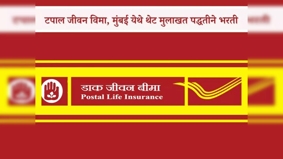 टपाल विभागात ‘डाक जीवन विमा’ प्रतिनिधींची भरती; 20 जानेवारीला मुलाखती