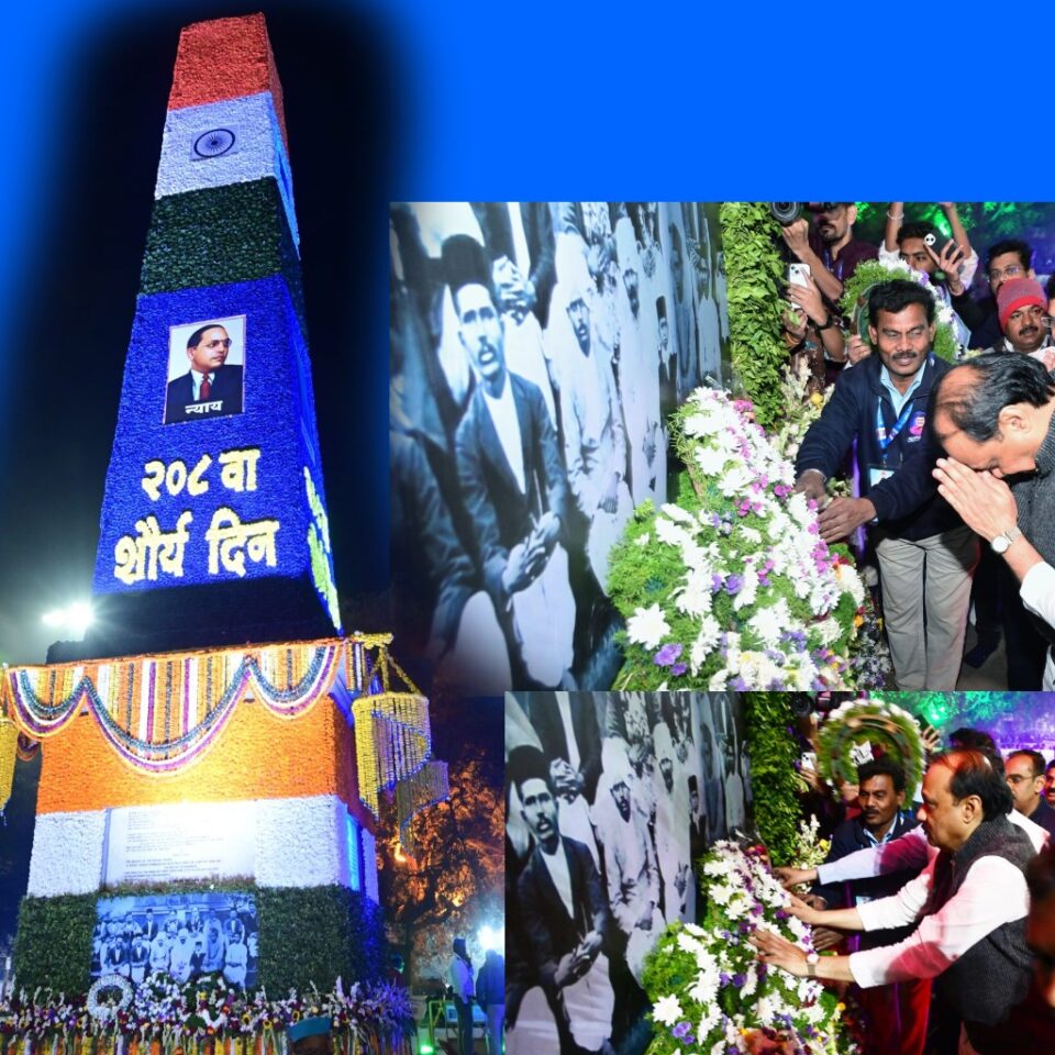 राज्य प्रतिनिधी-पुणे,  : २०८ व्या शौर्यदिनानिमित्त उपमुख्यमंत्री तथा पुणे जिल्ह्याचे पालकमंत्री अजित पवार यांनी आज सकाळी पेरणेफाटा येथील ऐतिहासिक विजयस्तंभास अभिवादन केले.
