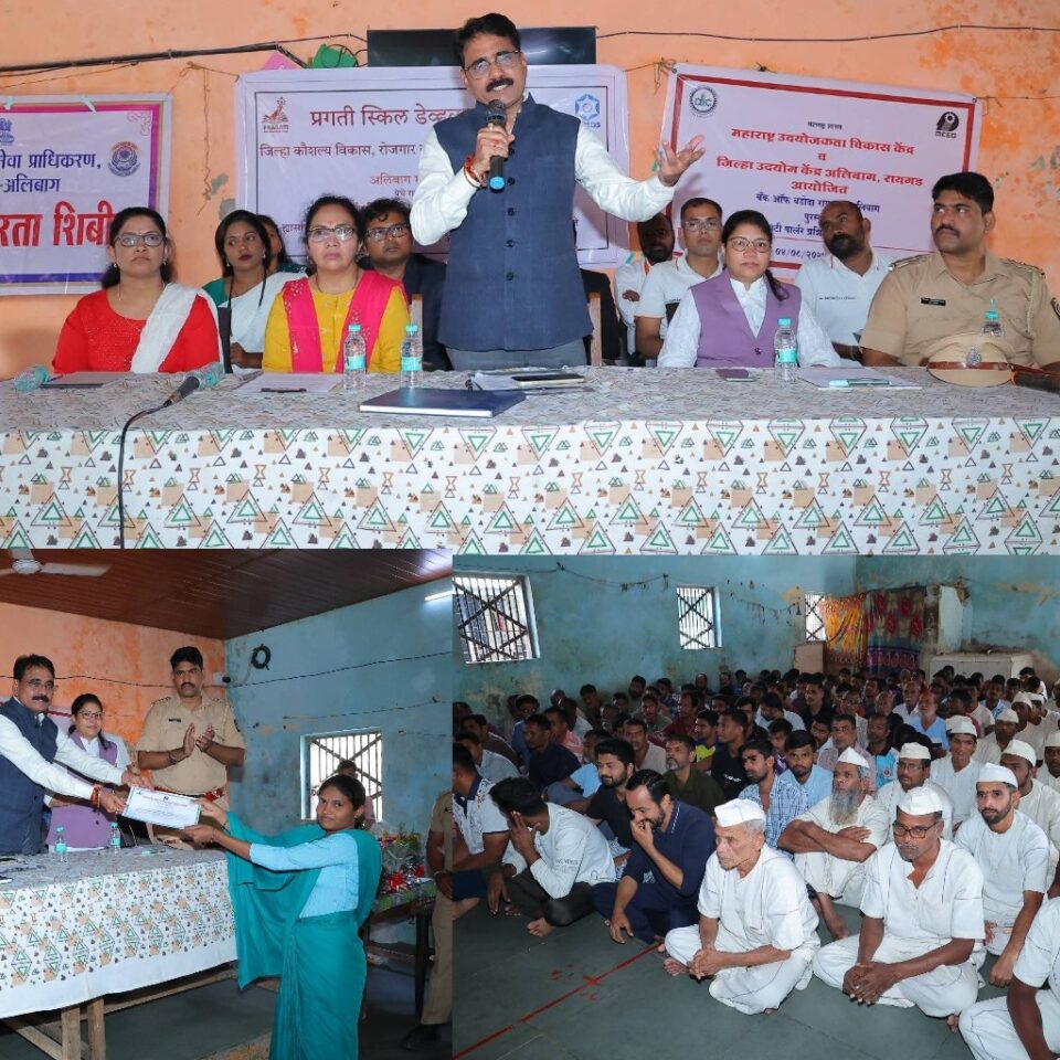 कारागृहातील बंदी सुटून गेल्यानंतर गुन्हेगारी क्षेत्रातून बाहेर पडून त्यांना रोजगाराची संधी उपलब्ध व्हावी, त्यांचा व त्यांचे कुटुंबाचा उदरनिर्वाह व्हावा, याउद्देशाने अपर पोलीस महासंचालक व महानिरीक्षक, कारागृह व सुधारसेवा, महाराष्ट्र राज्य, पुणे व विषेश कारागृह महानिरीक्षक, दक्षिण विभाग, मुंबई यांच्या मार्गदर्शनाखाली जास्तीत जास्त बंद्यांना व्यावसायिक प्रशिक्षण देण्यासाठी कारागृह प्रशासनाकडून प्रयत्न करण्यात येत आहे. या प्रयत्नांचा एक भाग म्हणून अलिबाग जिल्हा कारागृहातील बंद्यांकरीता कौशल्य विकास कार्यक्रम (DPC २०२५-२६), जिल्हा कौशल्य विकास, रोजगार व उद्योजकता मार्गदर्शन केंद्र, अलिबाग, जिल्हा उद्योग केंद्र, अलिबाग यांच्यामार्फत पुरुष बंद्यांना दुचाकी मोटार सायकल दुरुस्ती व महिला बंद्यांकरीता ब्युटिपार्लर बेसीक व अॅडव्हांन्स कोर्सचे प्रशिक्षण पूर्ण केलेल्या अलिबाग जिल्हा कारागृहातील बंद्यांना जिल्हाधिकारी किशन जावळे यांच्याहस्ते प्रमाणपत्र वितरण करण्यात आले.