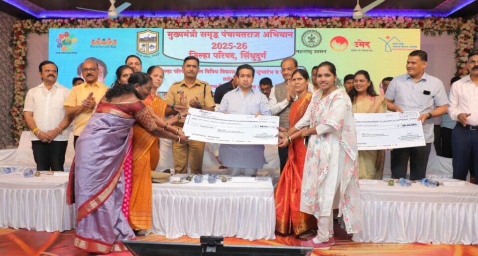 मुख्यमंत्री समृद्ध पंचायतराज अभियान अंतर्गत विकास कामांचा शुभारंभ व लोकर्पण तसेच वैयक्तिक लाभ वितरण व सन्मान सोहळा पालकमंत्री राणे यांच्या अध्यक्षतेखाली पार पडला, त्यावेळी ते बोलत होते. यावेळी मुख्य कार्यकारी अधिकारी रवींद्र खेबुडकर, पोलीस अधीक्षक डॉ. मोहन दहिकर, अतिरिक्त मुख्य कार्यकारी अधिकारी शीतल पुंड, जिल्हा बँकेचे अध्यक्ष मनीष दळवी, प्रभाकर सावंत आदी उपस्थित होते.जिल्हा परिषदेमार्फत राबविण्यात येणाऱ्या विविध योजनांमुळे वैयक्तिक लाभार्थ्यांना थेट लाभ मिळत असून, त्याचबरोबर संपूर्ण ग्रामीण अर्थव्यवस्था अधिक सक्षम होत आहे. या योजनांमुळे ग्रामीण भागातील नागरिक आर्थिकदृष्ट्या स्वावलंबी बनत असून, विकासाचा लाभ शेवटच्या घटकापर्यंत पोहोचत आहे. सिंधुदुर्ग जिल्हा विकासाच्या प्रत्येक निर्देशांकात पुढे राहील आणि राज्यात प्रथम क्रमांक मिळवेल, असा दृढ विश्वास व्यक्त करत पालकमंत्री राणे यांनी सर्व यंत्रणांना समन्वयाने काम करण्याचे आवाहन केले.
