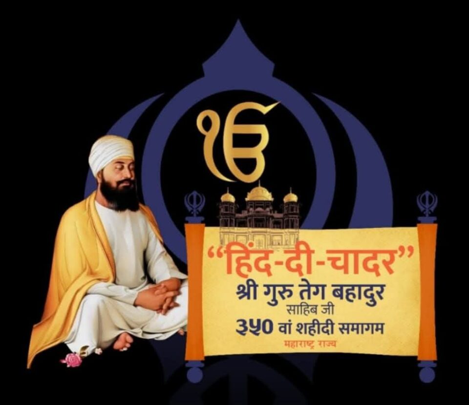 सर्वानी मोठ्या संख्येने या कार्यक्रमास उपस्थित रहावे. हिंद-की-चादर श्री गुरु तेग बहादुर साहिब जी यांच्या ३५० व्या शहीदी समागम वर्षानिमित्त राज्यातील नांदेड, नागपूर व नवी मुंबई जि. ठाणे येथे राज्य शासनाच्या अल्पसंख्याक विकास विभाग व हिंद-की- चादर श्री गुरू तेग बहादुर साहिब जी ३५० वी शहीदी समागम राज्यस्तरीय समिती, शीख, सिखलकर, बंजारा, लबाना, सिंधी व मोहियाल व इतर सर्व समाज यांच्या संयुक्त विद्यमाने या कार्यक्रमाचे नांदेड येथे दि.24 व 25 जानेवारी 2026 रोजी कार्यक्रमाचे आयोजन करण्यात येणार आहे. या ऐतिहासिक शहिदी समागम कार्यक्रमास जिल्ह्यातील सीख, सिकलकर, बंजारा, लबाना, सिंधी व मोहियाल व इतर सर्व समाज बांधवाना उपस्थित राहण्याबाबत जिल्हा प्रशासनाने आवाहन केले आहे.