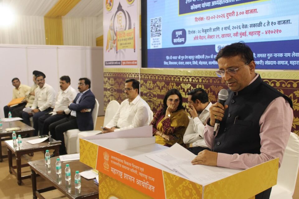 खारघर, नवी मुंबई येथे २८ फेब्रुवारी व १ मार्च रोजी आयोजित “हिंद-दी-चादर” श्री गुरु तेग बहादूर साहिबजी ३५० वा शहिदी समागम कार्यक्रमाच्या यशस्वीततेसाठी स्थापित 26 समित्यांच्या कामकाजाचा विभागीय आयुक्त डॉ.विजय सूर्यवंशी यांनी ओवे मैदान, खारघर येथे आढावा घेतला.
