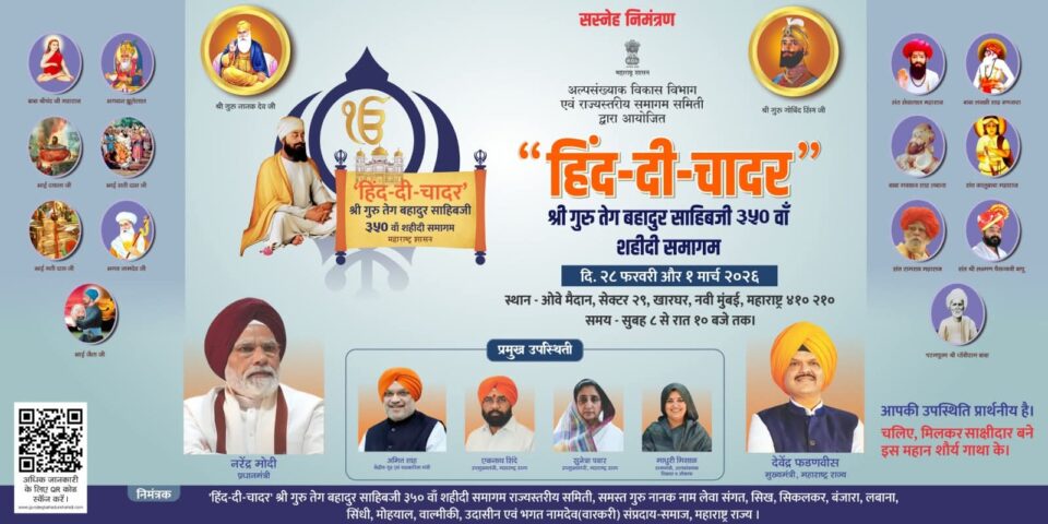 विभागीय माहिती कार्यालयाच्या वतीने श्री गुरु तेग बहादूर साहिबजी यांच्या जीवन, कार्यावर आधारित कोल्हापूर, सांगली व सिंधुदुर्ग जिल्ह्यासाठी निबंध व घोषवाक्य स्पर्धा आयोजित करण्यात आल्या. निबंध स्पर्धेसाठी खुल्या व विद्यार्थी गटातून मराठी, हिंदी, इंग्रजी व उर्दू भाषेमधून निबंध प्राप्त झाले. तर घोषवाक्य स्पर्धेसाठी खुल्या व विद्यार्थी गटातून मराठी, हिंदी, इंग्रजी व उर्दू भाषेमधून घोषवाक्य प्राप्त झाले.राज्य शासनामार्फत नवी मुंबई येथील खारघर येथे ‘हिंद-दी-चादर’ श्री गुरु तेग बहादुर यांच्या 350 व्या शहिदी समागमाचा कार्यक्रम आयोजित करण्यात आला आहे. युवा पिढीच्या मनात त्याग, शौर्य आणि श्री गुरु तेग बहादुर यांच्या शौर्याचा इतिहास पोहोचविण्याचा प्रयत्न या कार्यक्रमाच्या माध्यमातून करण्यात येत आहे. या कार्यक्रमास प्रधानमंत्री नरेंद्र मोदी, केंद्रीय गृहमंत्री अमित शाह, राज्याचे मुख्यमंत्री देवेंद्र फडणवीस, उपमुख्यमंत्री एकनाथ शिंदे, उपमुख्यमंत्री सुनेत्रा पवार तसेच विविध क्षेत्रांतील मान्यवर उपस्थित राहणार आहेत. तसेच शीख, सिकलीगर, बंजारा, लबाना, सिंधी, मोहयाल, वाल्मिकी, उदासी तसेच भगत नामदेव संप्रदाय (वारकरी) या समाजाचे प्रतिनिधी या कार्यक्रमात मोठ्या संख्येने सहभागी होणार आहेत.