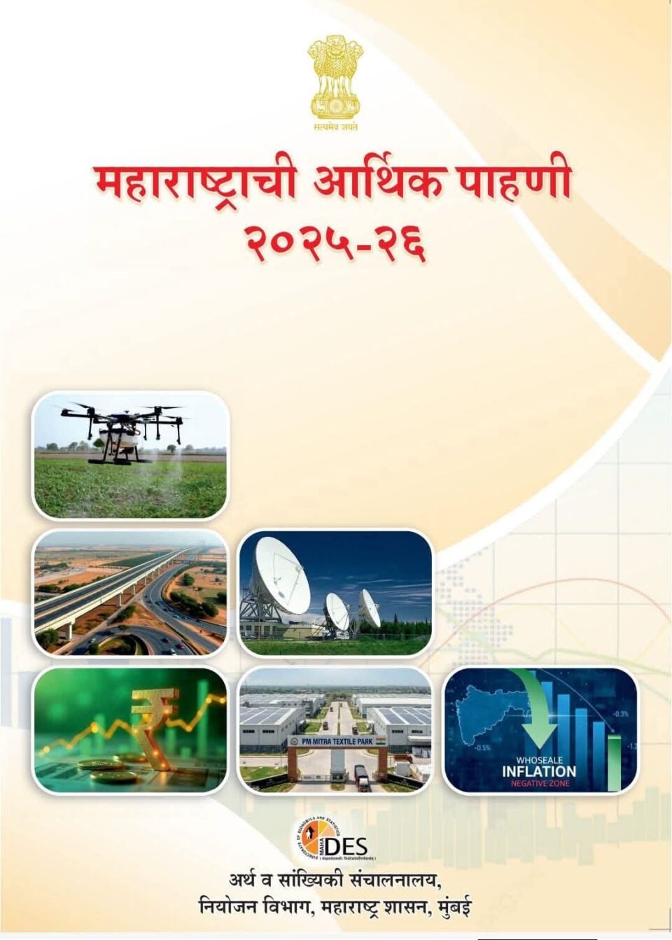 चलनवाढ नियंत्रणात,एप्रिल ते डिसेंबर 2025 या कालावधीत ग्रामीण भागातील सरासरी ग्राहक किंमत निर्देशांक ४०१.८ तर नागरी भागातील 376.7 होता. या कालावधीत ग्रामीण भागात २.० टक्के आणि नागरी भागात १.५ टक्के चलनवाढ नोंदविण्यात आली. जीवनावश्यक वस्तूंवरील जीएसटी दरातील सुधारणांमुळे किमतींवर सकारात्मक परिणाम झाल्याचेही अहवालात नमूद करण्यात आले आहे
