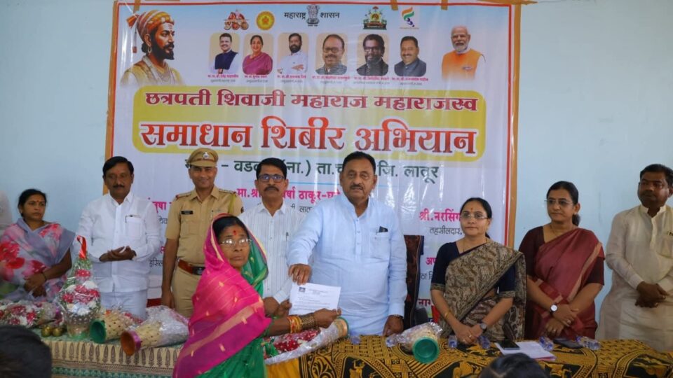 लातूर, प्रतिनिधी छत्रपती शिवाजी महाराज महाराजस्व अभियानाच्या पहिल्या टप्प्यात सर्वसामान्य नागरिकांच्या तक्रारींचे निवारण करण्यासाठी आणि शासकीय योजनांचा लाभ एकाच छताखाली मिळवून देण्यासाठी चाकूर तालुक्यातील वडवळ नागनाथ येथे समाधान शिबिराचे आयोजन करण्यात आले होते. या शिबिराचे उद्घाटन सहकार मंत्री बाबासाहेब पाटील यांच्या हस्ते झाले. तसेच यावेळी विविध शासकीय योजना मंजुरी प्रमाणपत्रे, दाखल्यांचे वाटप करण्यात आले.