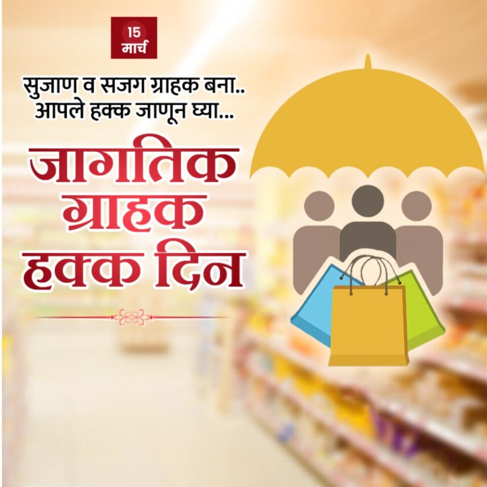 राज्य प्रतिनिधी -दरवर्षी १५ मार्च रोजी साजरा होणारा जागतिक ग्राहक हक्क दिन हा दिवस ग्राहकांच्या अधिकारांविषयी जागरूकता वाढवण्यासाठी महत्त्वाचा मानला जातो. ग्राहकांना सुरक्षित, दर्जेदार आणि पारदर्शक सेवा मिळाव्यात, तसेच त्यांच्या तक्रारींना न्याय मिळावा यासाठी शासन विविध उपक्रम राबवत असते. महाराष्ट्रात अन्न, नागरी पुरवठा व ग्राहक संरक्षण विभागामार्फत ग्राहक हक्कांबाबत जनजागृती केली जाते.