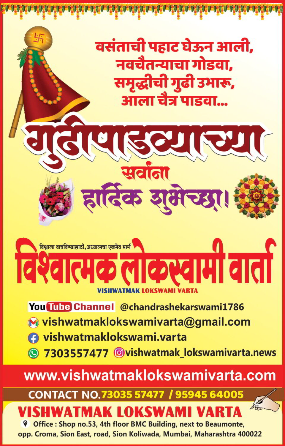 इतरचैत्राच्या सोनेरी पहाटेत, आनंदाची गुढी उभारूया, नववर्षाचे स्वागत करूया! गुढीपाडव्याच्या शुभेच्छा! by vishwatmaklokswamivartaMarch 19, 2026March 19, 20260