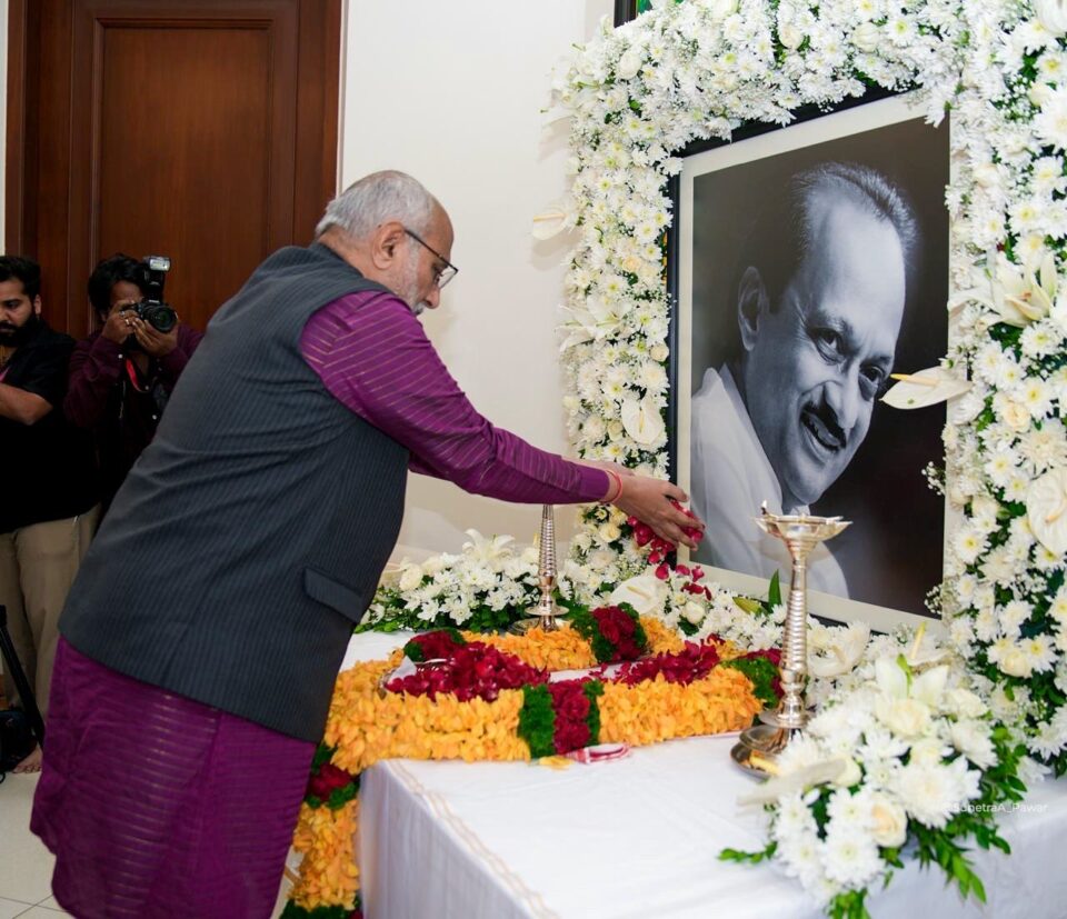 उपराष्ट्रपती सी. पी. राधाकृष्णन यांनी दिवंगत उपमुख्यमंत्री अजित पवार यांच्या प्रतिमेस पुष्प अर्पण करत आदरांजली वाहिली. या भेटीदरम्यान उपराष्ट्रपती श्री. राधाकृष्णन यांनी दिवंगत उपमुख्यमंत्री अजित पवार यांच्या निधनाबद्दल तीव्र शोक व्यक्त केला आणि पवार कुटुंबीयांचे सांत्वन केले. या दुःखद प्रसंगी त्यांनी कुटुंबीयांना धीर देत आपल्या संवेदना व्यक्त केल्या.