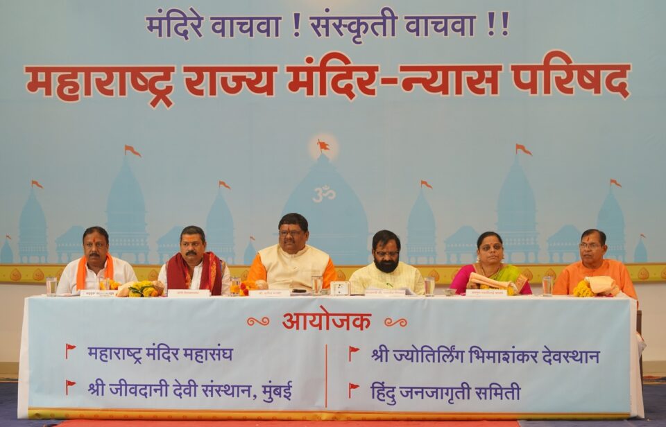 *मंदिरात येणार्या भक्तांना धर्मशिक्षित करण्याचे दायित्व मंदिरांनी घेतले, तर रामराज्य दूर नाही !* – सद्गुरु स्वाती खाडये, सनातन संस्थाप्राचीन काळापासून मंदिरे ही कला, संस्कृती समाज आणि अर्थ यांच्यासह मंदिरे ही धर्माशिक्षणाची केंद्रे होती. मंदिरांच्या माध्यमातून समाजाला एकसंध ठेवण्याची प्रक्रिया होत आहे. हिंदू समाजाचे जन्महिंदूपासून म्हणून कर्महिंदूंपर्यंत रूपांतरण करण्यासाठी मंदिर हे प्रभावी माध्यम आहे. आता मंदिर आणि तीर्थक्षेत्रांच्या सद्यस्थितीचा अभ्यास केला असता आणि तीर्थक्षेत्रे आज पर्यटन स्थळ झाले आहेत. देवाला योग्य प्रकारे नमस्कार कसा करावा हेही हिंदूंना शिकवण्याची वेळ आली असून तीर्थक्षेत्रांचा पूर्ण लाभ आपण करून घेत नाही. त्यामुळे मंदिरात येणार्या भक्तांना धर्मशिक्षित करण्याचे दायित्व मंदिरांनी घेतले, तर रामराज्य दूर नाही.*उपस्थित मान्यवर -* श्री ज्योतिर्लिंग भीमाशंकर देवस्थानचे अध्यक्ष श्री. सुरेश कौदरे, ह.भ.प. बबनराव सापते, ह.भ.प विठ्ठल स्वामी वडगावकर, स्वामी समर्थ रामदास स्वामी संस्थाचे पू. उदय शेकडे, ह.भ.प. पुरुषोत्तम कुलकर्णी, दत्त मंदिर पळशी येथील पू. जगदीश पिसाळ महाराज, श्री विशाल महाराज पाटेश्वर, रत्नागिरी येथील पतंजली योग समितीचे अधिवक्ता विद्यानंद जोग, माजी धर्मादाय आयुक्त श्री. दिलीप देशमुख, विश्व हिंदु परिषदेचे अध्यक्ष श्री. विजयराव गाढवे, मलकापूर (जिल्हा कोल्हापूर) येथील विठ्ठल मंदिराचे विश्वस्त श्री. बाबासाहेब पाटील, तुळजापूर येथील गरीबनाथ मठाचे मठाधीश महंत मावजीनाथ महाराज, अहिल्यानगर येथील संजिवनी भारती आखाड्यचे महंत सोहम भारती, श्री हनुमान मंदिर नॉर्दन ब्रॅच’चे श्री. विलास पुंड, अकोला येथील पुरातन महादेव मंदिराचे अध्यक्ष श्री. अरविंद देठे, ईश्वरपूर (जिल्हा सांगली) येथील श्री. अमल मलगुंडे, रेणवसिद्ध मंदिर येथील, श्रीनाथ देवस्थान ट्रस्ट खरसुंडी येथील विश्वस्त भरत पाटील, मिरज (जिल्हा सांगली) संस्थानचे प्रतिनिधी श्री. अवधूत बोडस, यवतमाळ येथील ‘श्री महादेव मंदिर मणदेव’चे अध्यक्ष श्री. अशोक खोडकुंभे, अमरावती येथील श्री नागेश्वर महादेव संस्थान धामंत्रीचे अध्यक्ष श्री. कैलास पनपालिया, कौंडण्यपूर येथील श्री विठ्ठल रुक्मिणी मंदिराचे अध्यक्ष श्री. अतुल ठाकरे*परिषदेतील विशेष घडामोडी :* हिंदू सोडून अन्य कुणालाही देवस्थानच्या यात्रांमध्ये प्रवेश देण्यात येऊ नये यांसाठी अहिल्यानगर जिल्ह्यातील मढी गावचे सरपंच आणि श्री कानिफनाथ देवस्थान ट्रस्टचे अध्यक्ष श्री. संजय मरकड यांचा, तसेच शनिशिंगणापूर येथील श्री. ऋषिकेश शेटे यांचा शनिशिंगणापूर देवस्थानातील भ्रष्टाचार उघड केल्याविषयी विशेष सत्कार करण्यात आला.*श्री. स