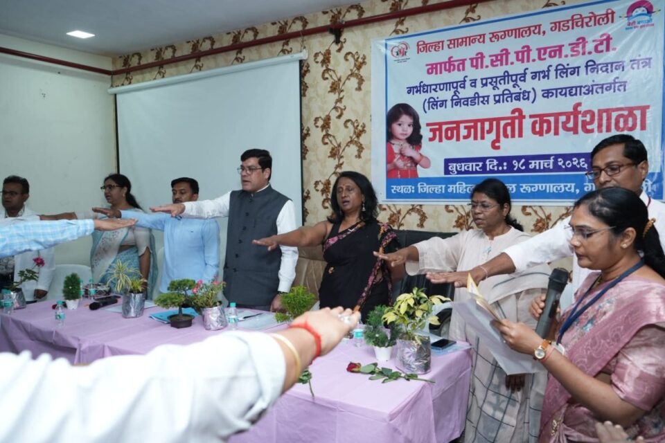 गडचिरोली, आरोग्य प्रतिनिधी: स्त्री-भ्रूण हत्या रोखणे, जनजागृती वाढविणे व संबंधित कायद्यांची प्रभावी अंमलबजावणी सुनिश्चित करण्याच्या उद्देशाने जिल्हा महिला व बाल रुग्णालय, गडचिरोली येथे गर्भधारणा पूर्व व प्रसूतीपूर्व निदान तंत्र (पीसीपीएनडीटी) कायद्याविषयी एक दिवसीय कार्यशाळा उत्साहात व यशस्वीरीत्या पार पडली.