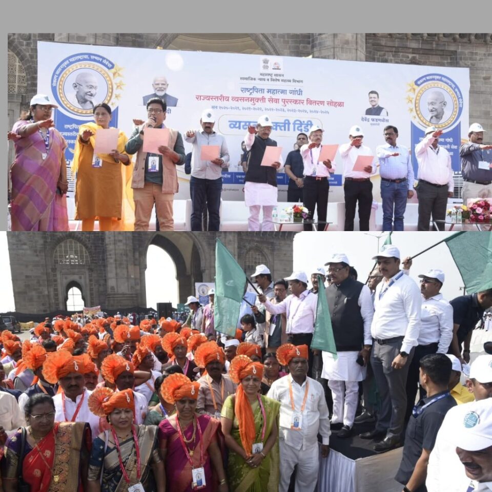 आज गेट ऑफ इंडिया ते यशवंतराव चव्हाण सेंटरपर्यंत व्यसनमुक्ती दिंडी काढण्यात आली. सामाजिक न्याय मंत्री संजय शिरसाट यांनी गेटवे ऑफ इंडिया येथे या दिंडीला हिरवा झेंडा दाखवला.