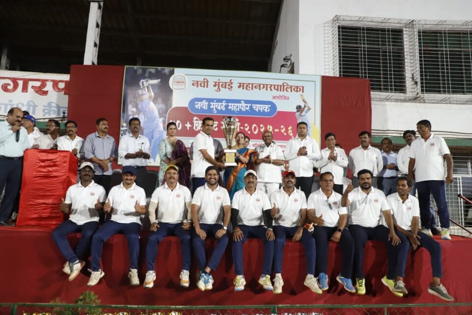 नवी मुंबई महानगरपालिका मुख्यालयाजवळील क्रीडांगणात 23, 24 व 25 मार्च 2026 या तीन दिवसांच्या कालावधीत आयोजित करण्यात आलेल्या नवी मुंबई महापौर चषक 40+ क्रिकेट स्पर्धेची उपान्त्य व अंतिम फेरी नवी मुंबई महानगरपालिकेच्या सेक्टर 3 येथील राजीव गांधी क्रीडासंकुलात खेळविण्यात आली.