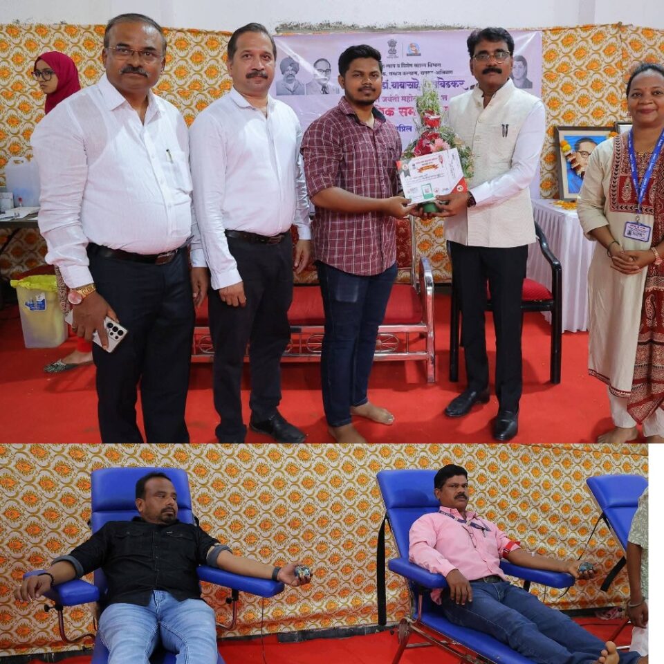 रायगड-अलिबाग, प्रतिनिधी): भारतरत्न डॉ. बाबासाहेब आंबेडकर यांच्या जयंती महोत्सवानिमित्त जिल्ह्यात दि. ८ एप्रिल ते दि. १४ एप्रिल २०२६ या कालावधीत सामाजिक सप्ताह साजरा करण्यात येत असून, या उपक्रमाअंतर्गत जिल्हाधिकारी कार्यालय आवार,शासकीय अधिकाऱ्यांचे क्रीडा संकुल येथे रक्तदान शिबिराचे आयोजन करण्यात आले होते.