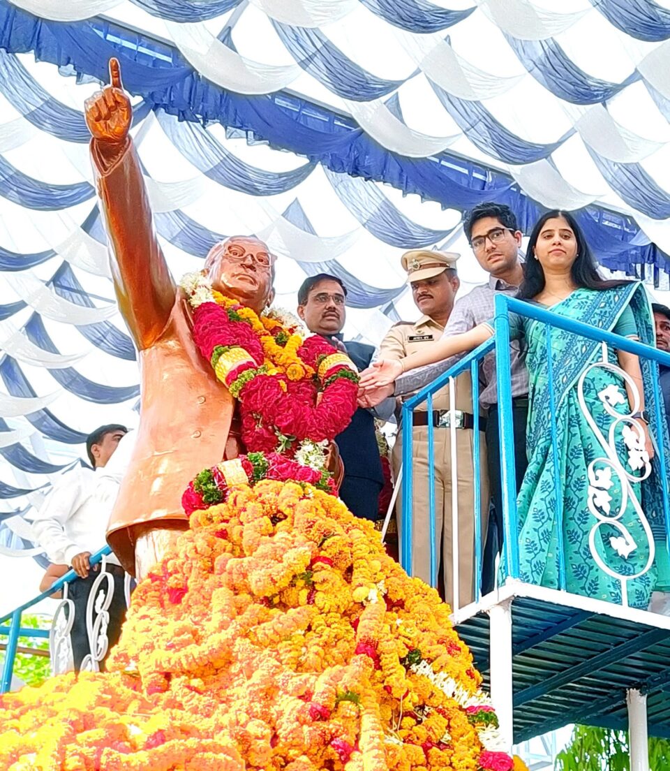 भारतरत्न डॉ. बाबासाहेब आंबेडकर यांच्या १३५ व्या जयंतीनिमित्त जिल्हाधिकारी डॉ. भारत बास्टेवाड यांनी त्यांच्या पुतळ्याला पुष्पहार अर्पण करून अभिवादन केले.