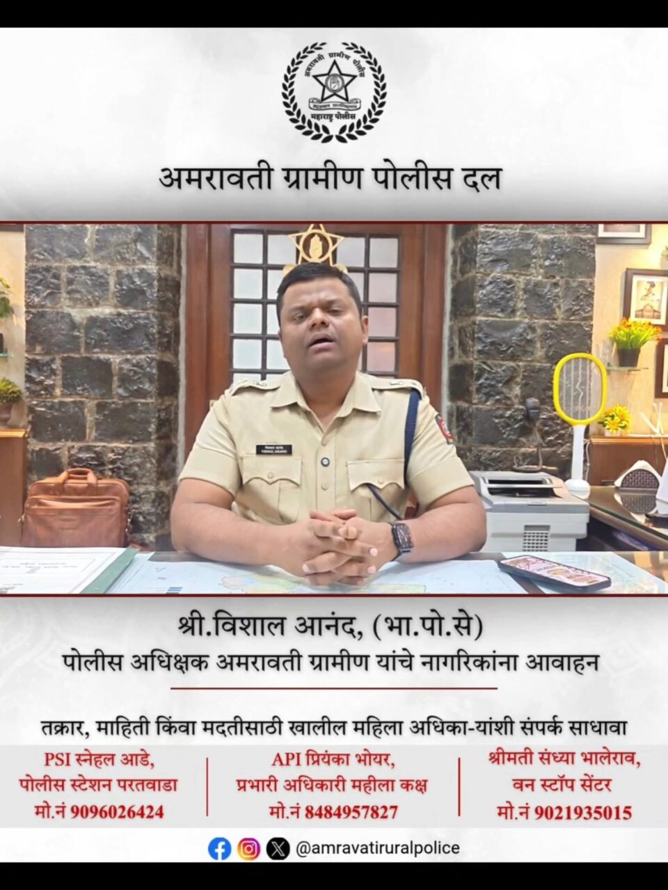 कायदा व सुव्यवस्था राखण्यासाठी नागरिकांनी अफवा पसरवू नयेत व सोशल मीडियाचा जबाबदारीने वापर करावा.👮‍♂️ अमरावती ग्रामीण पोलीस – आपल्या सेवेत सदैव
