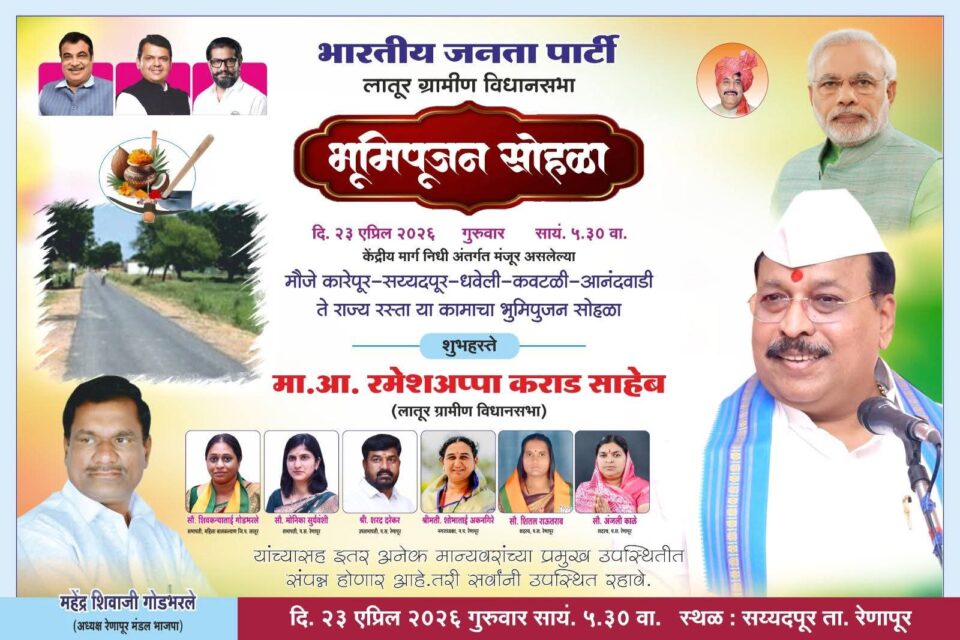 20 वर्षाच्या संघर्ष; रमेशअप्पांच्या प्रयत्नांना यश! कारेपूर – सय्यदपूर – धवेली – कवठळी – आनंदवाडी ते राज्य रस्त्याच्या कामाचा शुभारंभ 23 एप्रिल रोजी होणार…गेली कित्येक वर्षांपासून भारत देशात कित्येक गावातील रस्ते सुसज्जीकरणाच्या प्रतीक्षेत आहेत, आणि आता त्या रस्त्यांना सुसज्ज करण्याचा विडा हा आपल्या मोदी सरकारने उचलला आहे.✌🏻असाच एक रस्ता आपल्या लातूर ग्रामीण मतदारसंघातील होता, तो रस्ता म्हणजे ‘कारेपूर – सय्यदपूर – धवेली – कवठळी – आनंदवाडी ते राज्य रस्ता’ हा रस्ता… 😐पण ही परिस्थिती जेंव्हा आपल्या कर्तव्यदक्षतेने प्रचलित असलेले विकासमूर्ती आमदार श्री. Rameshappa Karad यांच्या कानावर गेली, तेंव्हा त्यांनी हा रस्ता नागरिकांच्या सोयीसाठी व्यवस्थितरित्या सुसज्जकरण्याचा विडा उचलला. आणि ह्यासाठी वेळोवेळी केंद्र शासनानेकडे पाठपुरावा सुरू केला, आणि नेहमीप्रमाणे त्यांच्या प्रामाणिक प्रयत्नांना यश सुद्धा आलं. 👏🏻म्हणजेच केंद्र शासनाच्या केंद्रीय मार्ग निधी अंतर्गत ‘कारेपूर – सय्यदपूर – धवेली – कवठळी – आनंदवाडी ते राज्य रस्ता’ या 11 कि.लो. रस्त्याच्या सुसज्जीकरणासाठी 25 कोटी रुपयांचा निधी मंजूर करण्यात आला. आणि आता ह्या रस्त्याच्या कामाच्या शुभारंभ दि. 23 एप्रिल 2026, गुरुवार रोजी, सायं. 5.30 वा. ह्या दुर्लक्षित रस्त्यासाठी वरदान ठरलेले आमदार श्री. रमेशअप्पा कराड साहेबांच्या हस्ते पार पडणार आहे. 😍🎊त्यामुळे मी रेणापूर तालुक्यातील समस्त जेष्ठ नागरिक नागरिक, बंधू-भगिनी, युवा वर्ग व भाजप कार्यकर्त्यांना आवाहन करतो की, येणाऱ्या 23 एप्रिल रोजी होणाऱ्या ह्या शुभारंभास आवर्जून उपस्थित राहावे, व या ऐतिहासिक शुभारंभाचे साक्षीदार व्हावे. 🤝