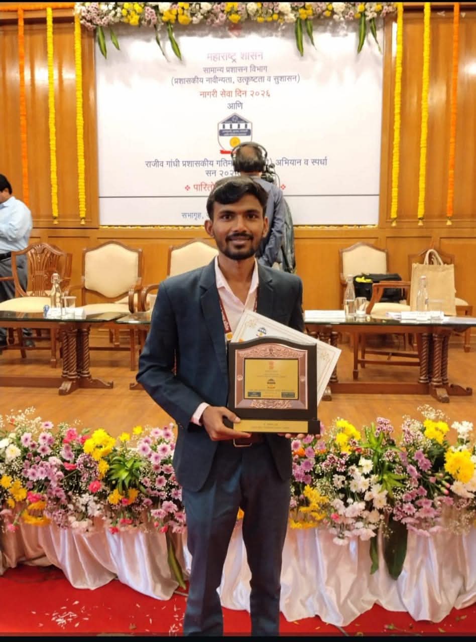राजीव गांधी प्रशासकीय गतिमानता (प्रगती) अभियानशासकीय कर्मचारी गटात हृषिकेश आंग्रे यांना राज्यस्तरीय पुरस्कार  मुख्यमंत्र्यांच्या हस्ते मुंबईत पुरस्कार वितरण