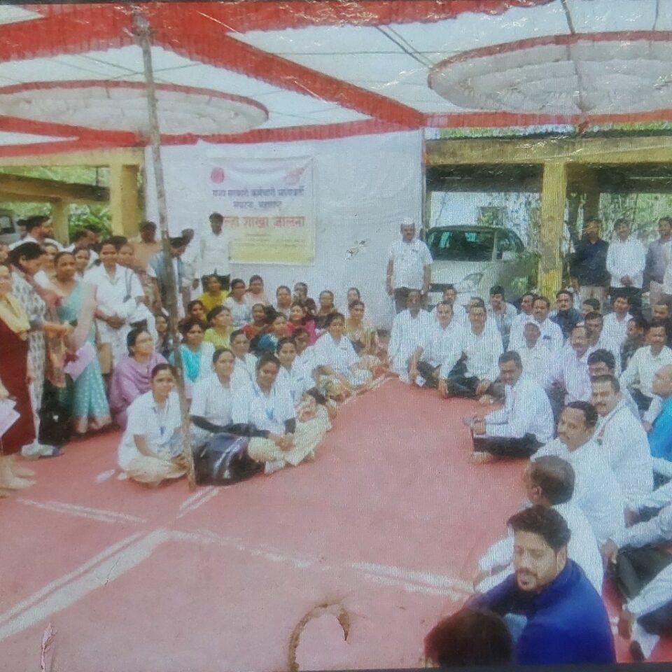 महाराष्ट्र राज्य सर्व राज्य सरकारी कर्मचारी बेमुदत संपावर   जिल्हाधिकारी कार्यालयासमोर  निदर्शने