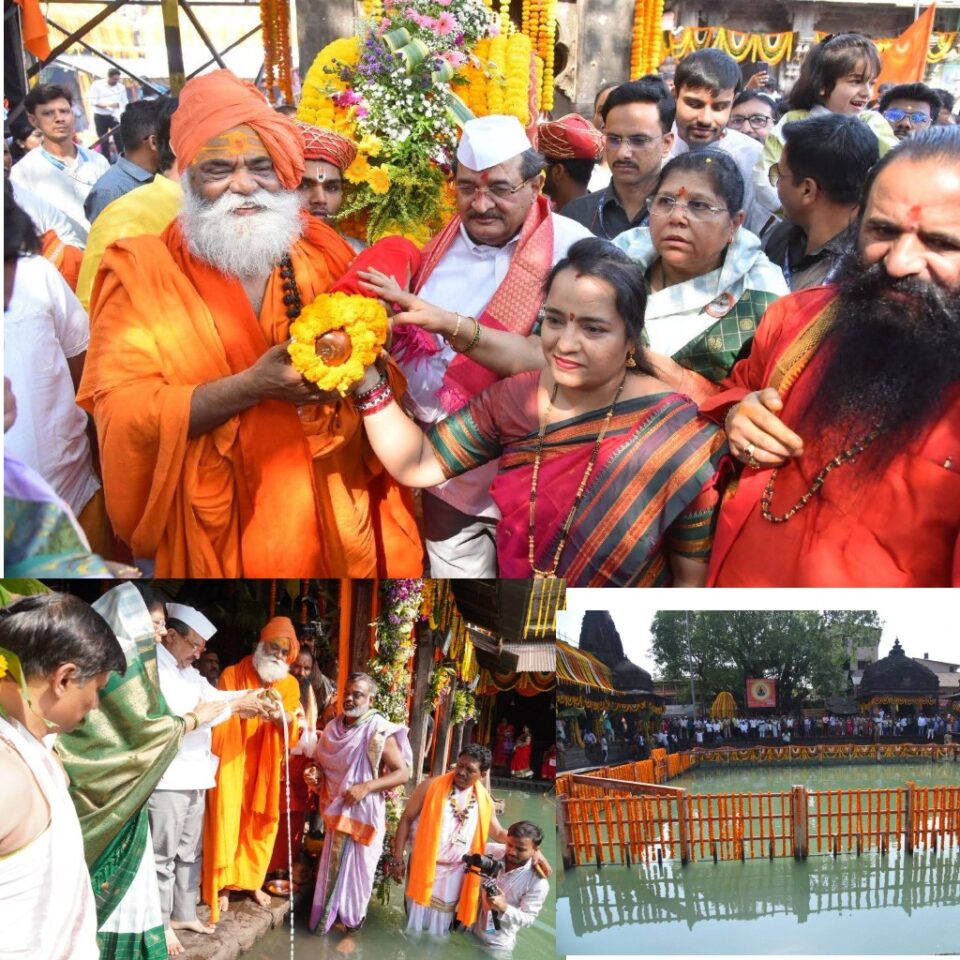 गोदावरी नदीचे उगमस्थान असलेल्या श्रीक्षेत्र त्र्यंबकेश्वर येथील कुशावर्त तीर्थावर जलसंपदा मंत्री राधाकृष्ण विखे पाटील यांच्या हस्ते सपत्नीक जलपूजन करून शहरातून जलदिंडी काढण्यात आली. याप्रसंगी जुना आखाड्याचे महंत हरिसिंग महाराज तसेच आनंद आखाड्याचे अध्यक्ष भगवान बाबा उपस्थित होते. त्यानंतर मंत्री श्री. विखे पाटील यांच्या उपस्थितीत जलयात्रेची पालखी टाळ-मृदुंग व ढोल-ताशांच्या गजरात शहरातून मार्गस्थ झाली.